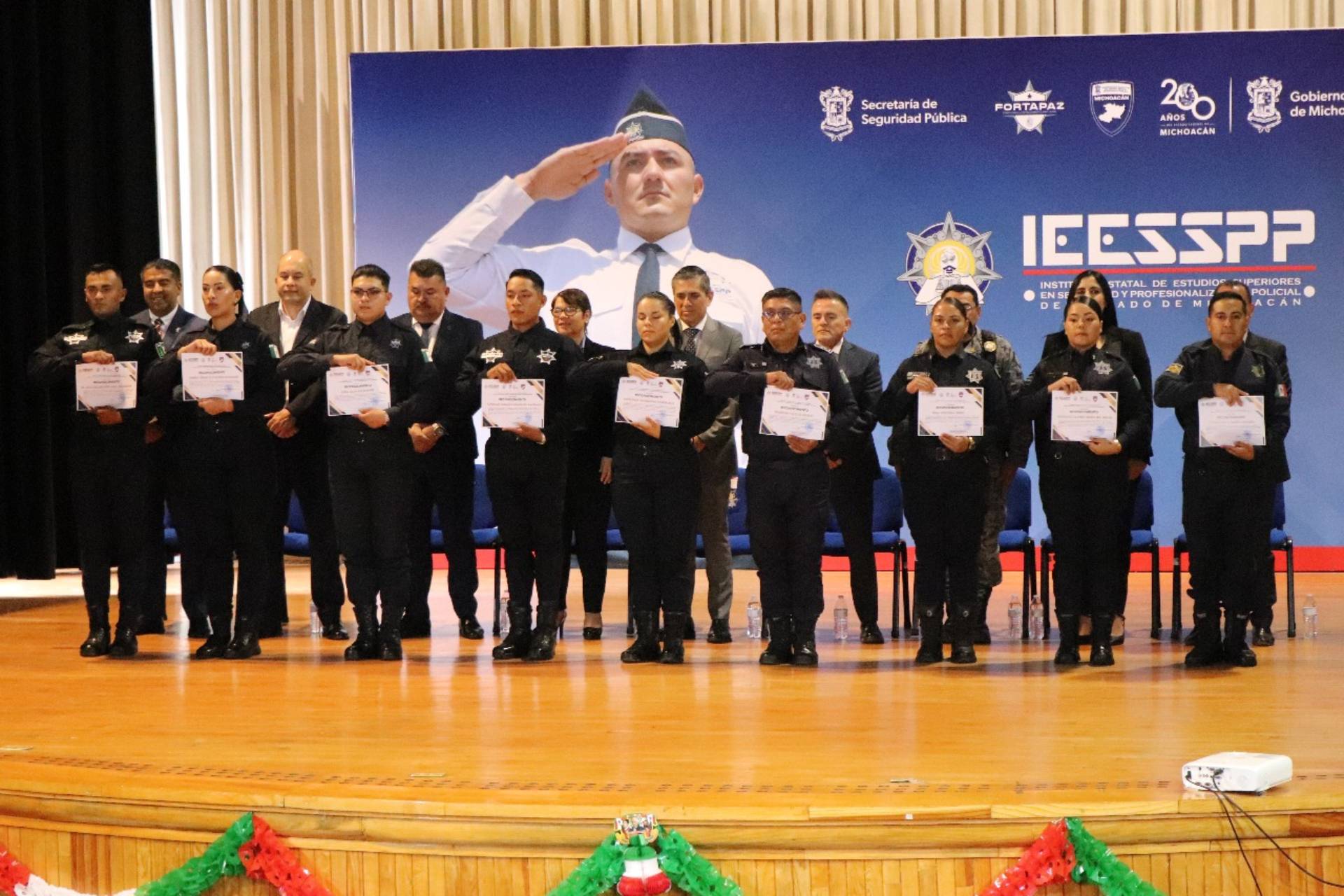 Los agentes que concluyeron su formación pertenecen a corporaciones de municipios como Pátzcuaro, Jacona, Ciudad Hidalgo, Tacámbaro, Quiroga, Maravatío, Uruapan y Zamora, entre otros.
