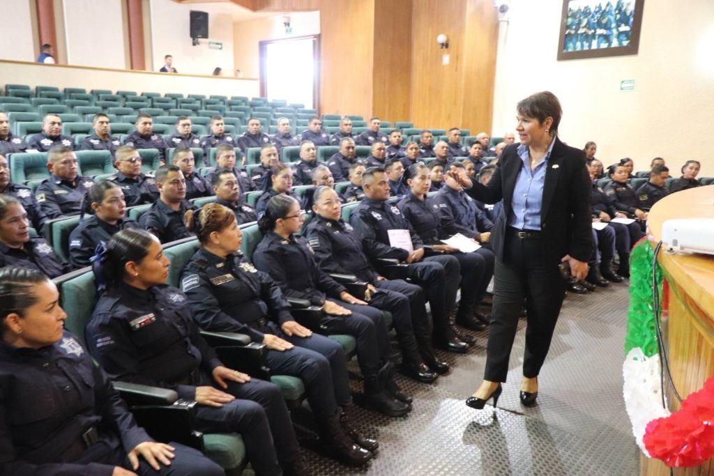 “Hoy concluyen su curso las y los elementos que durante tres meses fortalecieron sus conocimientos y habilidades para responder con eficacia a los retos actuales de la seguridad pública, y ahora con la garantía de obtener su Certificado Único Policial, requisito indispensable para el ejercicio de su labor”, señaló Barbosa Muñoz.