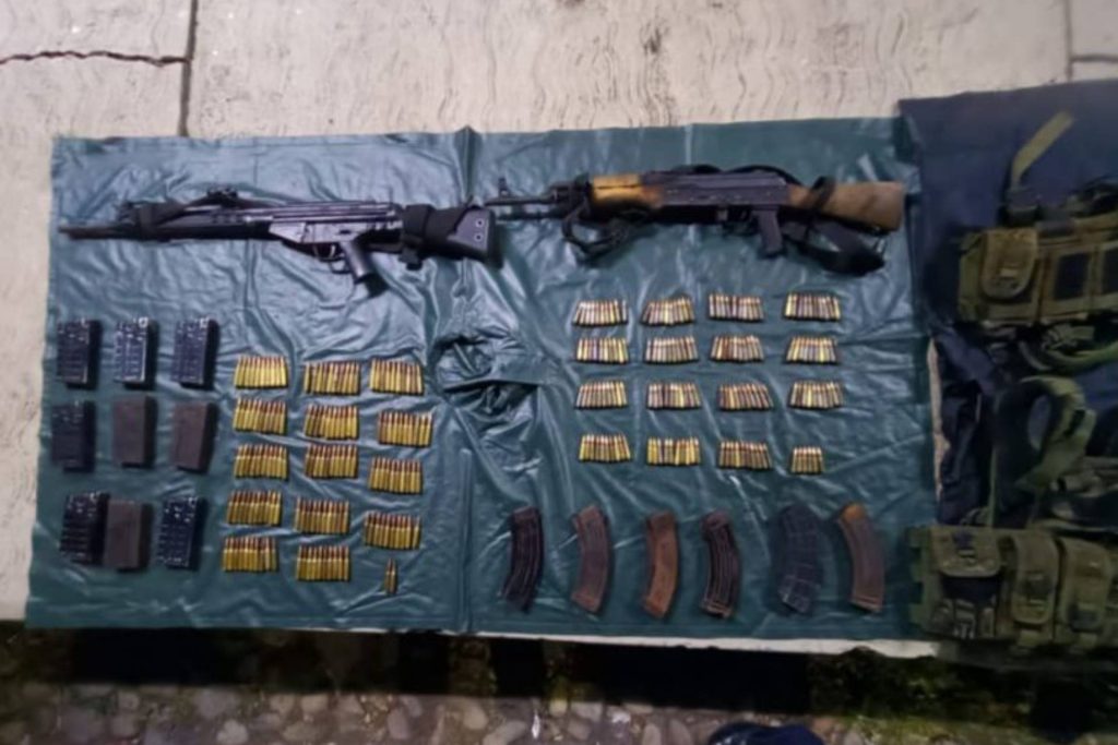 Tras responder el hecho, fue abatido un civil armado y fueron asegurados dos hombres en posesión de dos armas de fuego calibre 7.62X39 milímetros, 298 cartuchos útiles y 15 cargadores, mismas que fueron puestas a disposición de la autoridad competente.