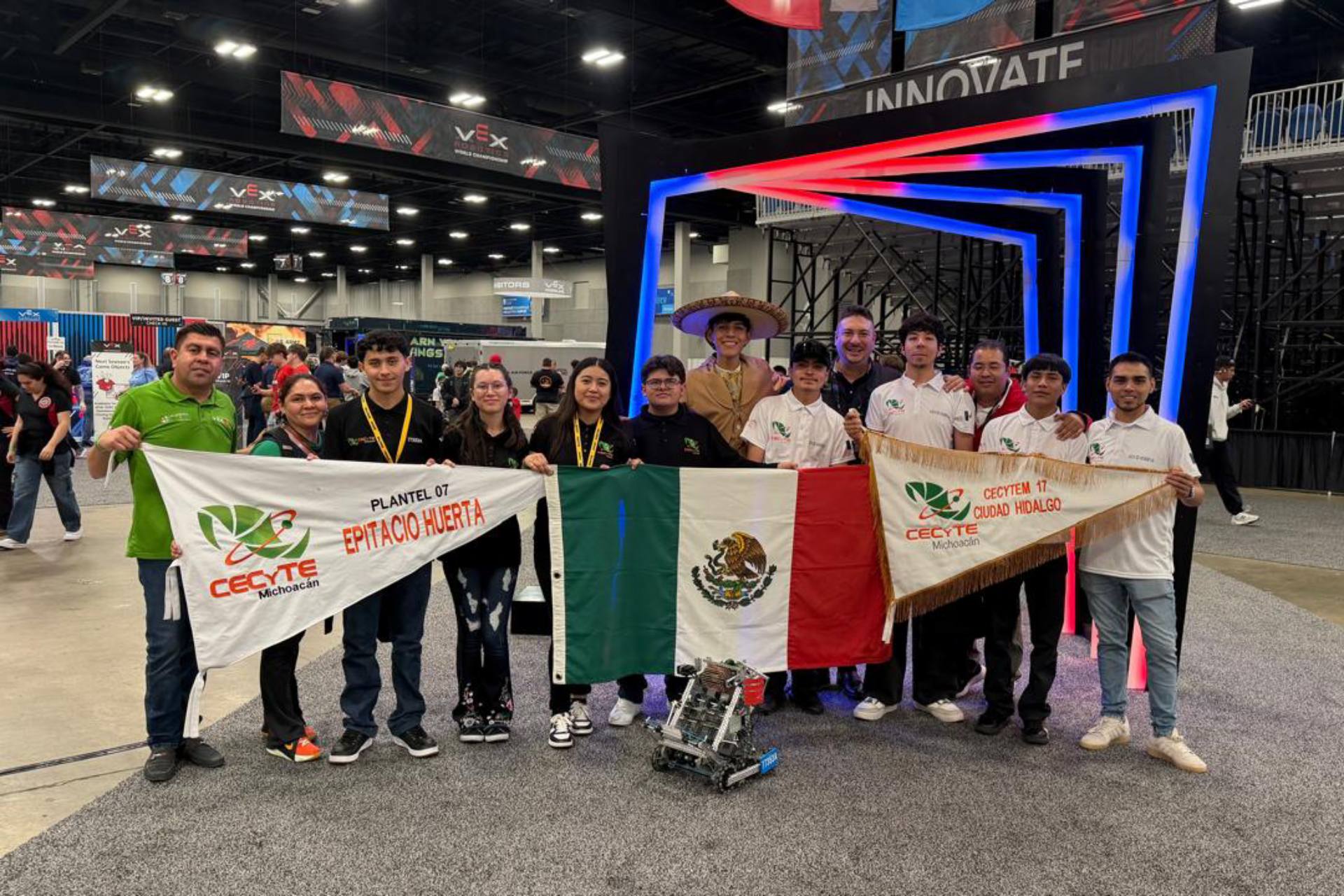 Las y los alumnos del Colegio de Estudios Científicos y Tecnológicos del Estado de Michoacán (Cecytem) ya se encuentran en San Luis, Missouri, Estados Unidos, donde participa en su segundo día de actividades dentro del Campeonato Mundial de Robótica VEX 2026, una de las competencias tecnológicas más importantes a nivel internacional, que concluirá el próximo 24 de abril.