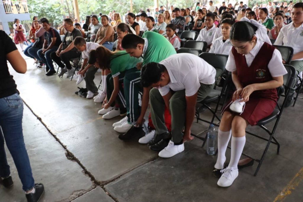 Asimismo, agradeció al personal docente y directivo por su compromiso con la formación de la juventud y por abrir las puertas para la entrega de estos apoyos.