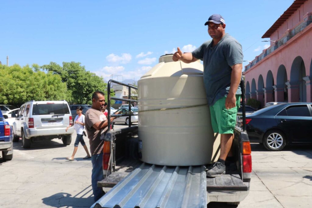 Con el objetivo de fortalecer la economía familiar y mejorar las condiciones de vida en las comunidades rurales, el gobierno municipal, que encabeza la presidenta municipal Fanny L. Arreola Piochardo; a través de la Secretaría de Desarrollo Rural, entregó 35 paquetes de láminas y tinacos, así como 15 equipos conformados por bombas y desbrozadoras.