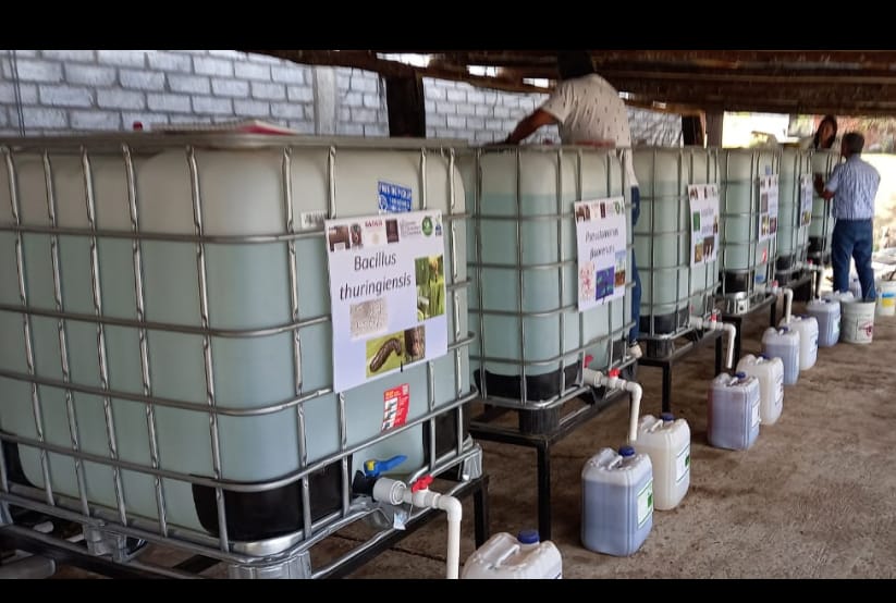 El grupo está integrado por siete productores agrícolas, así como por profesionistas del ejido de Casas Blancas, quienes, con el acompañamiento de personal del programa Agrosano de la Secretaría de Agricultura y Desarrollo Rural (Sader) instalaron el centro de producción de microorganismos y, con ello, la producción de al menos 5 mil 400 litros quincenales de seis microorganismos: cuatro bacterias y dos hongos.