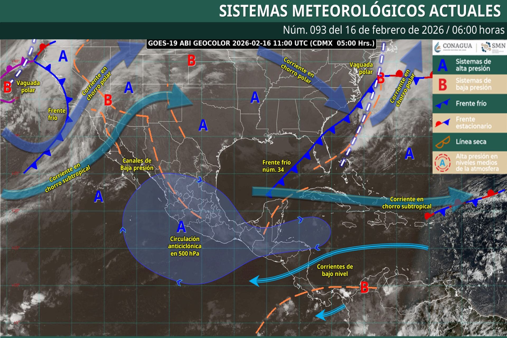 Pronóstico Meteorológico General Matutino de hoy Lunes 16 de Febrero de 2026.