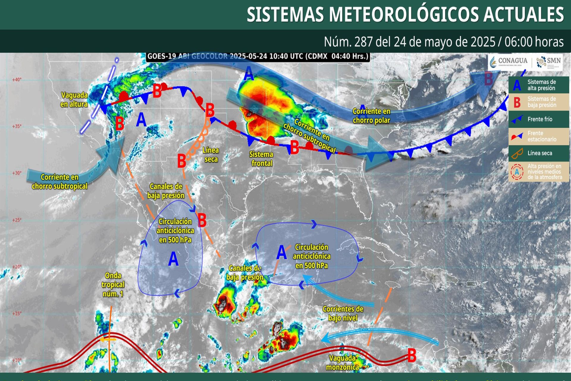 Pronóstico Meteorológico General Matutino de hoy Sábado 24 de Mayo de 2025.
