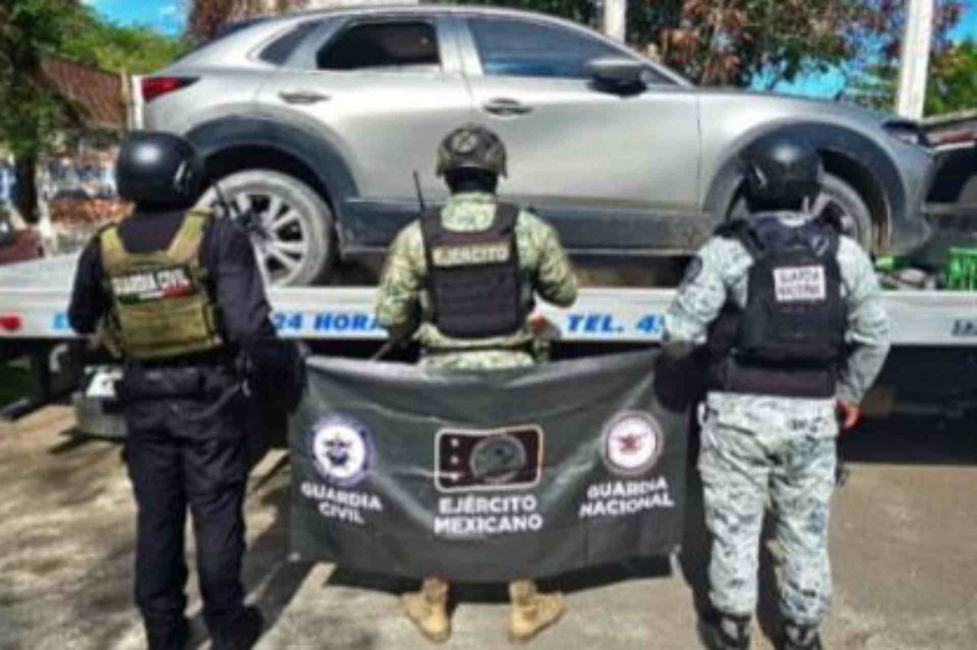 Con las tareas interinstitucionales de la Guardia Nacional, el personal militar y policial se aseguró a dos hombres al encontrarlos sobre el tramo carretero Apatzingán-Tepalcatepec, a la altura de la localidad 18 de marzo, quienes viajaban a bordo de dos vehículos de las marcas Mazda, que al ser verificados en la base de datos del C5, arrojaron reporte de robo.